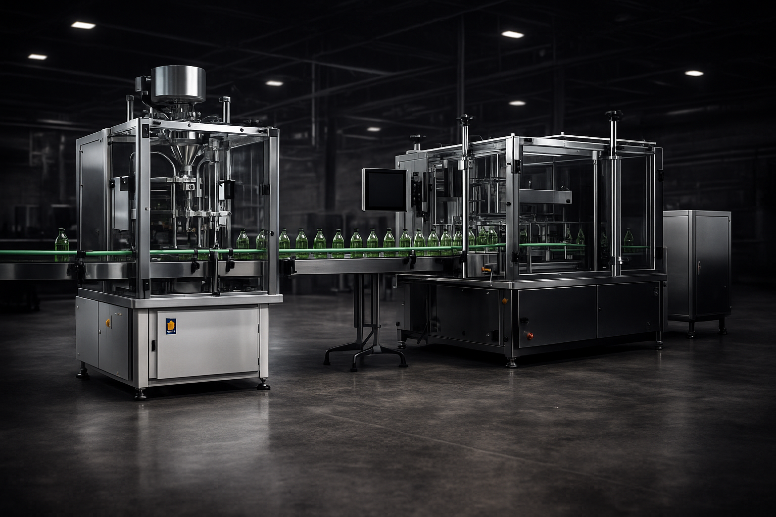The machine supports multiple bottle sizes and shapes. Changeover is quick and tool-free, allowing efficient production for small, medium, and large containers.